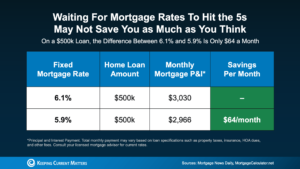 Yes, over time that $64 a month can add up. But it’s far from the dramatic swing many buyers imagine when they say they’re “waiting for the 5s.”